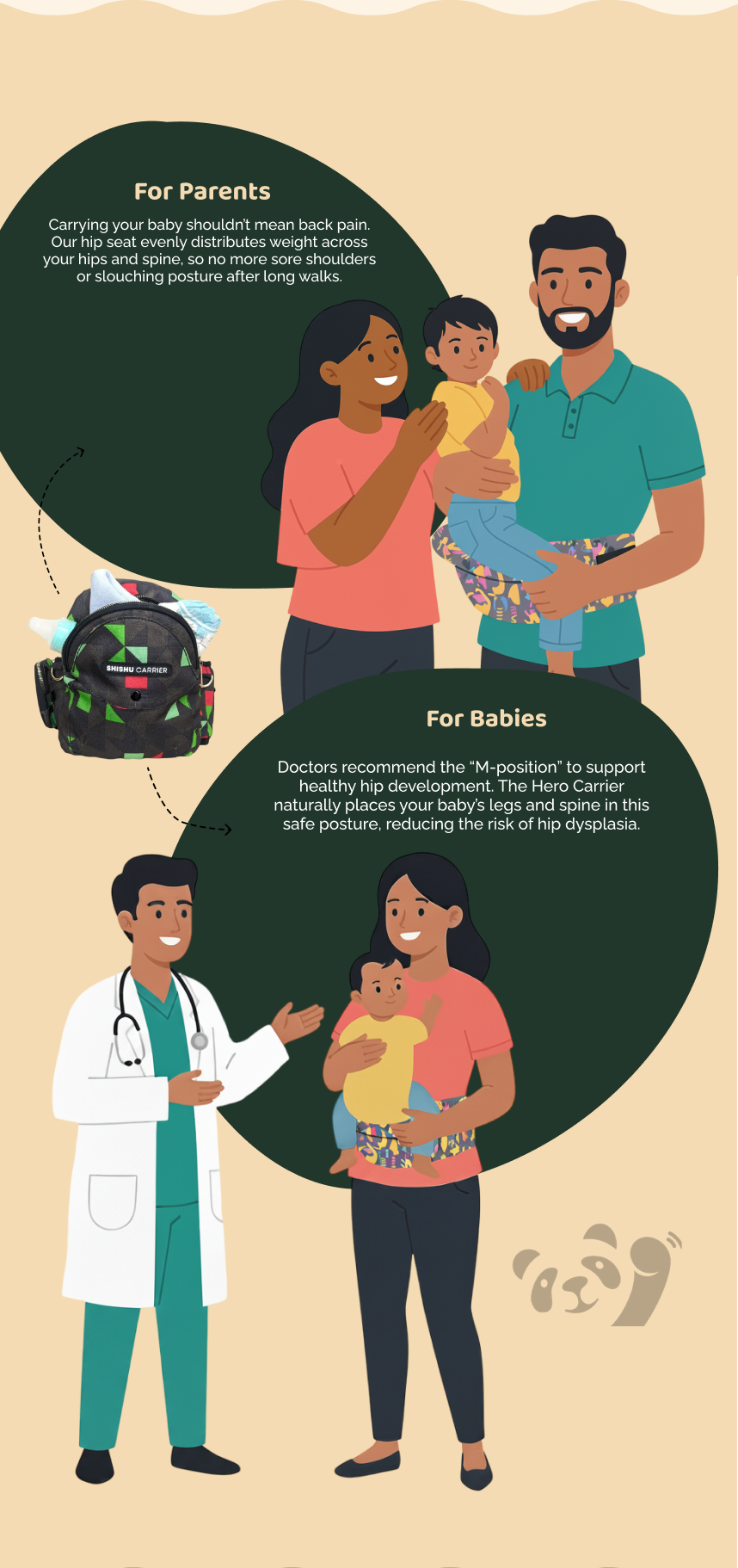 Most baby carriers strain your posture. The Hero Shishu Carrier is designed with pediatric-recommended seating and parent-tested ergonomics, so both you and your baby stay comfortable at home or on the go.