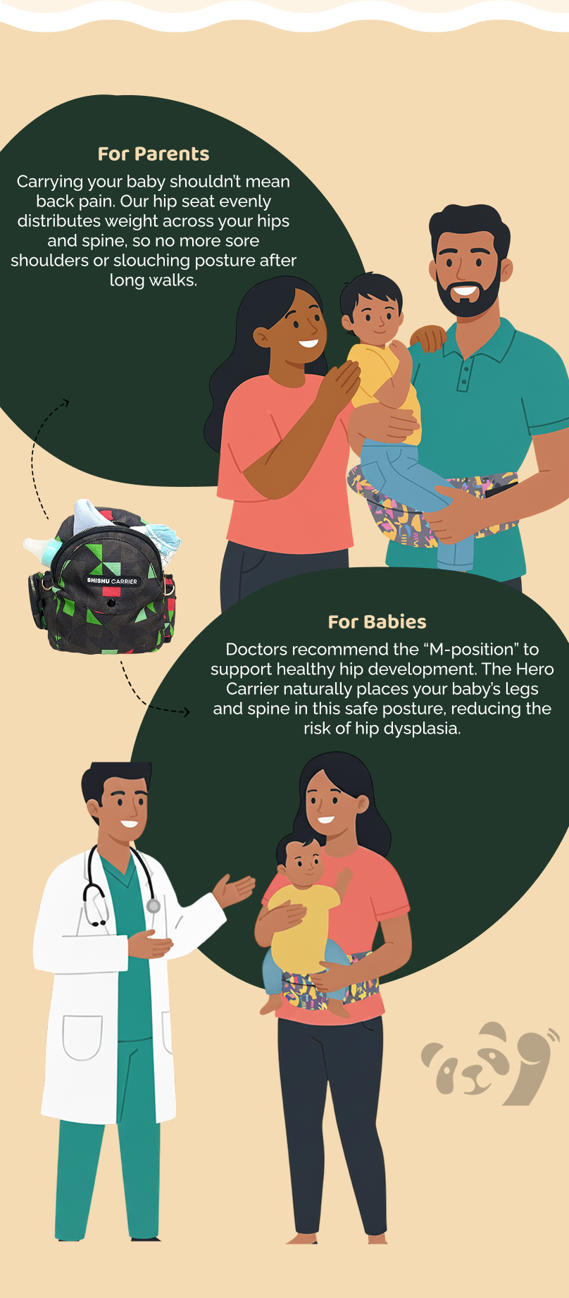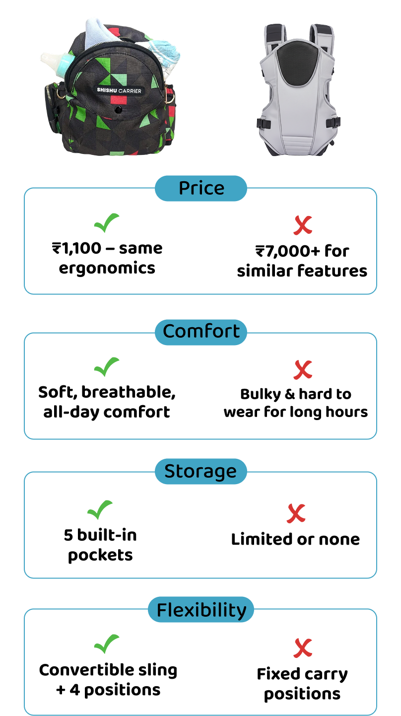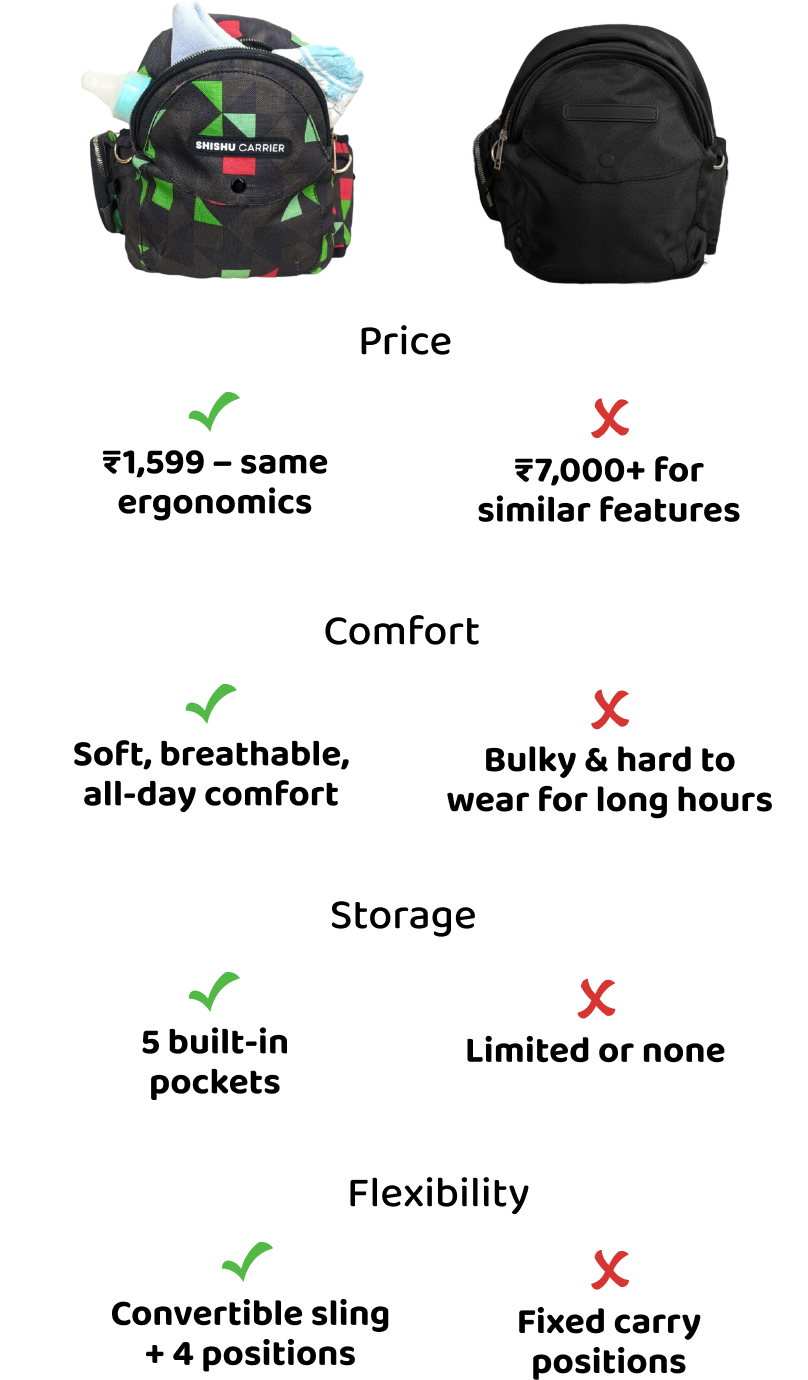 Most baby carriers strain your posture. The Hero Shishu Carrier is designed with pediatric-recommended seating and parent-tested ergonomics, so both you and your baby stay comfortable at home or on the go.